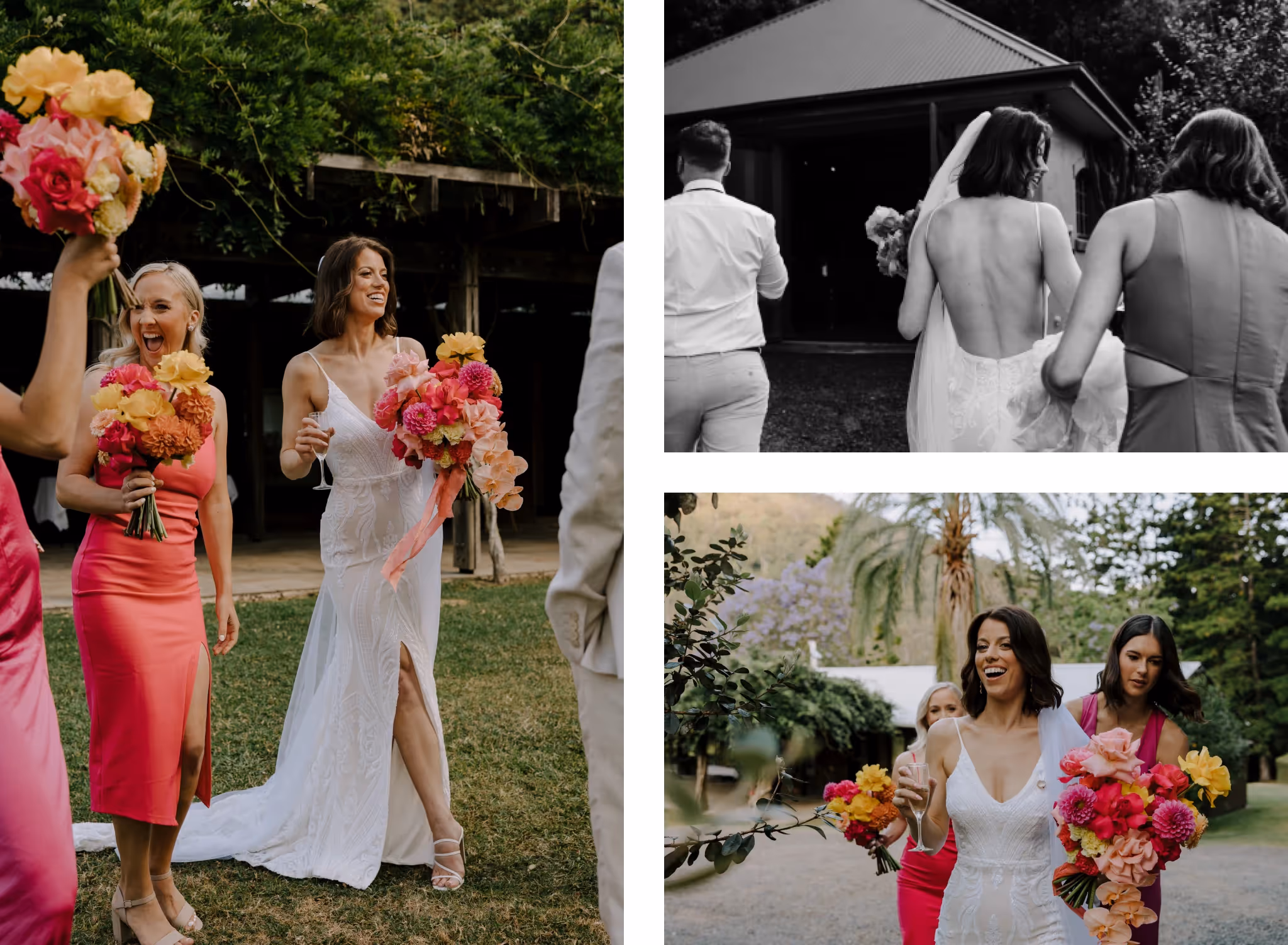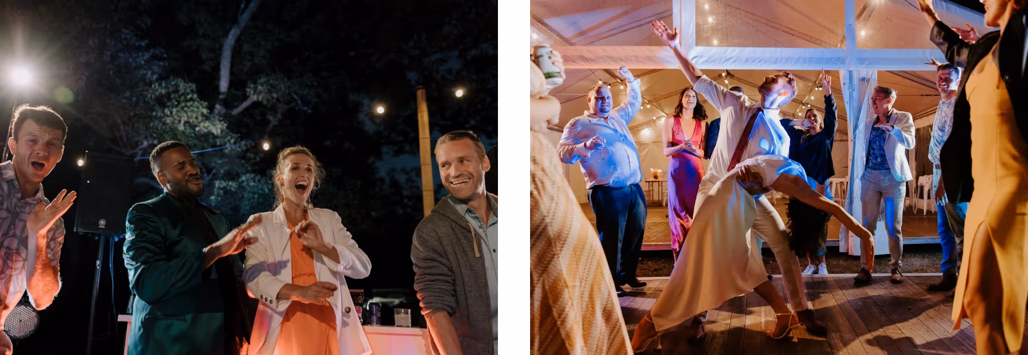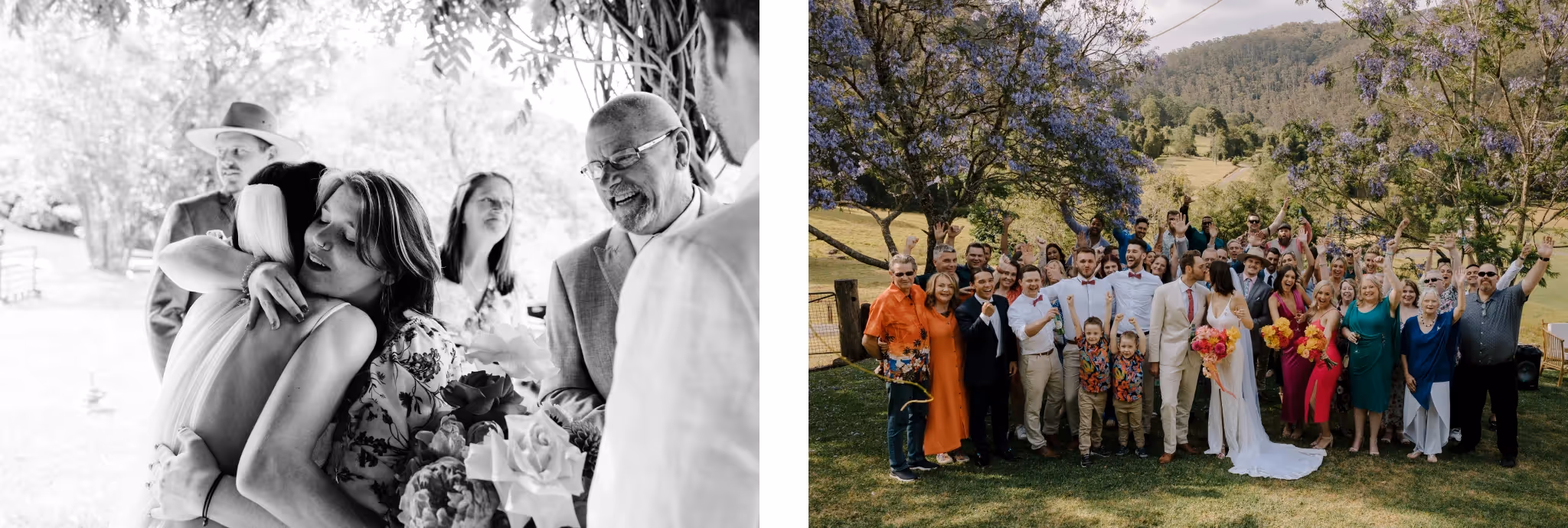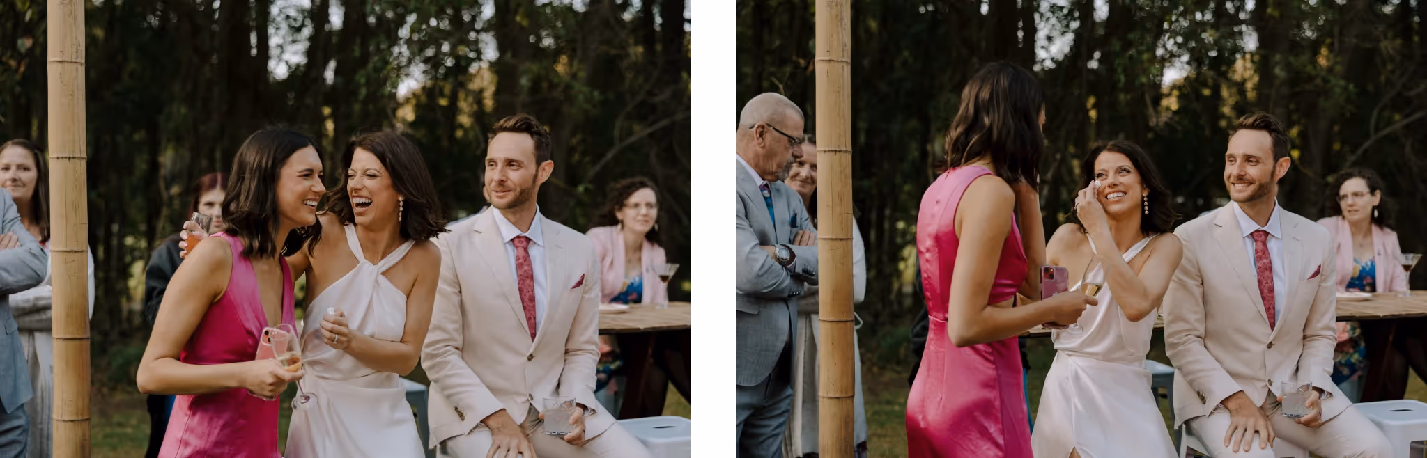 Ash & Jason met as professional dancers and I met them photographing their best friend's wedding. I'm always so grateful when family & friends I've met at weddings reach out and say 'we want you'. We jumped straight into what they were envisaging and my gosh.. it was all that and more. They invited 40 of their nearest and dearest to Bebeah Farm for a weekend festival with their glamping tents right next to the dance floor. Dance until you drop and roll into bed.Their festival was full of colourful styling, wood fired pizza, cocktails, laughing until you cry and CHECK OUT the first dance - I was cheering from behind the lens. Special mention to the team of incredible event planners & stylists at White Lane Events and Days Like These Events. Event planners are worth every single cent.Ash & Jason wanted their day to feel like uniquely 'them', Maximum time with their loved ones and full of that joy and cheekiness they enjoy together. Ash walked herself down the aisle and Jason's face says it all. The couple photos were just us walking with some cocktails and those two being silly and cute together in some pretty nice light. They even fed me gluten and diary free pizza and that kind of effort deserves a mention.